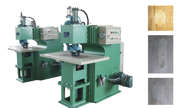 我公司生產的該款自動單板挖補機采用一個壓緊模、一個中模及上下兩個沖頭在一個工作過程中,完成全部補修工作,解決了上述難題,填補了行業空白。本機器適用于各種不同木質單板的修補。它操作簡單,挖補速度快,可節省大量人力,降低生產成本,提高單板品質等級。