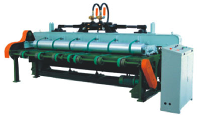 剪刀高速落于轉(zhuǎn)動的聚胺脂砧輥上,實現(xiàn)不間斷送板,以提高工作效率,單板輸送速度達到55m/min;
